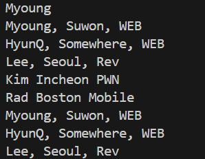 person = ['Kim', 'Incheon', 'PWN']