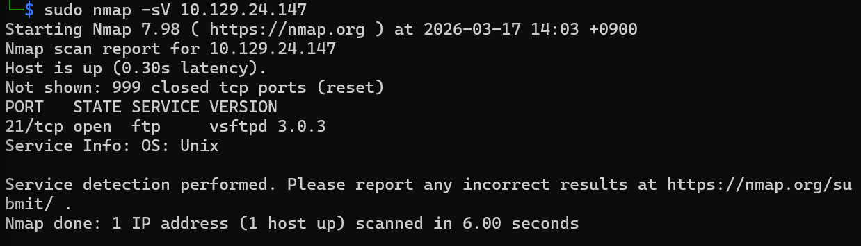그리고 또 여기서 생각해야할 점이 vsftpd 3.0.3이라는 정보를 확인 할 수 있는데