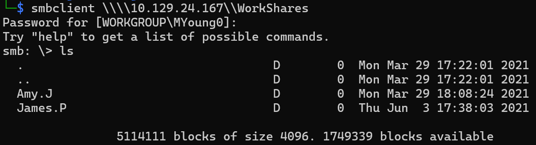 ls 명령어로 보니 Amy.J와 James.P라는 디렉토리들이 존재했음