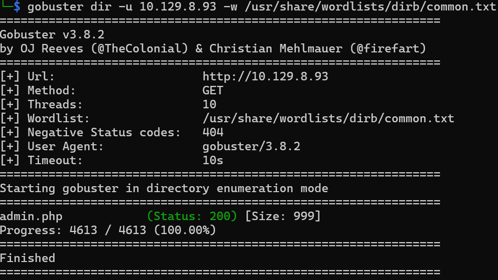 gobuster dir -u {target_ip} -w /usr/share/wordlists/dirb/common.txt
