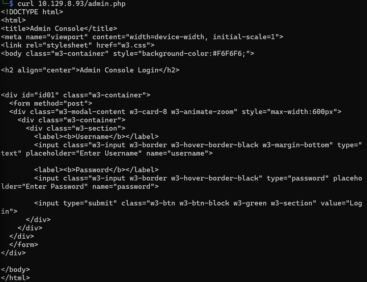 해당 명령어로 admin.php 페이지가 존재한다는 것을 알았기 때문에 그 페이지가 어떤 구조인지 확인해봅시다.